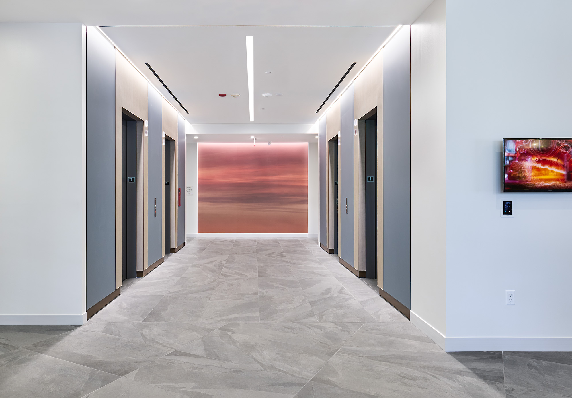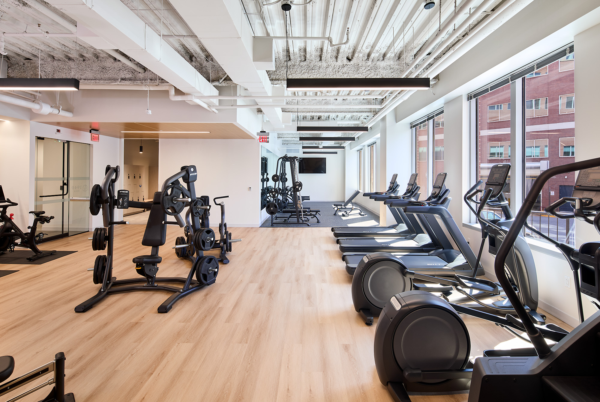 To further elevate the tenant experience, the scope also included a fully equipped fitness center with an adjacent locker room. Renovations extended into the elevator lobby. High-end finishes ranging from sleek millwork and custom lighting to durable, modern flooring were selected to convey a refined yet approachable atmosphere.